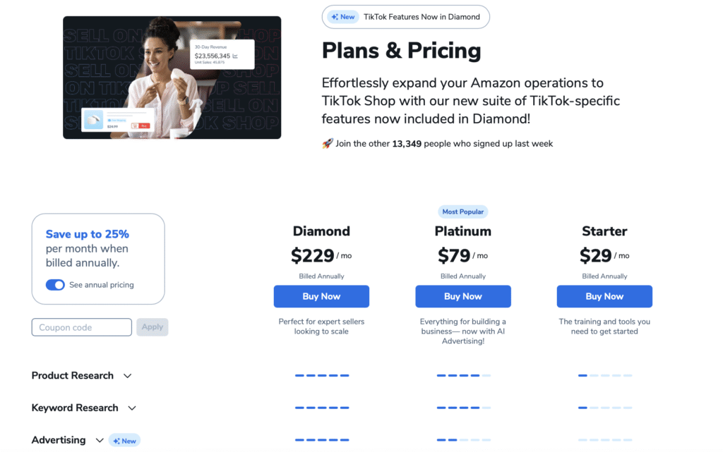 Ready to scale your Amazon business? Get the Diamond plan with an exclusive discount and unlock serious growth potential.
