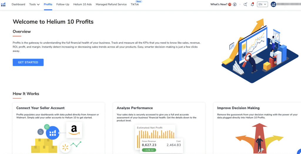 Helium 10’s Profits is the solution for exact information on products you sell. Profits provides accurate product sales data for your product in one convenient dashboard. This Amazon profitability software is a must for Amazon or Walmart sellers who want to scale their business.